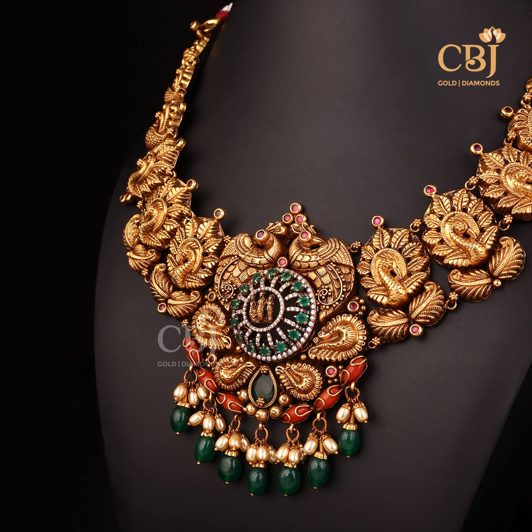 Antique Nakshi Short Gold Necklace Crafted in 17 Grams