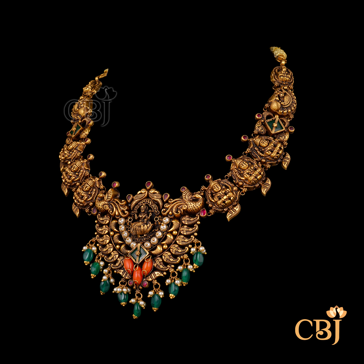 Antique Style 13 Grams Short Nakshi Gold Necklace Design