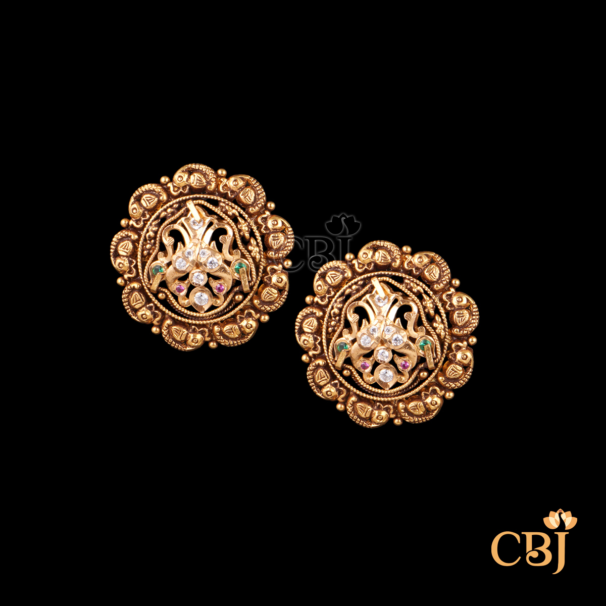 18Kt Cz Studs With Lab Grown Emeralds