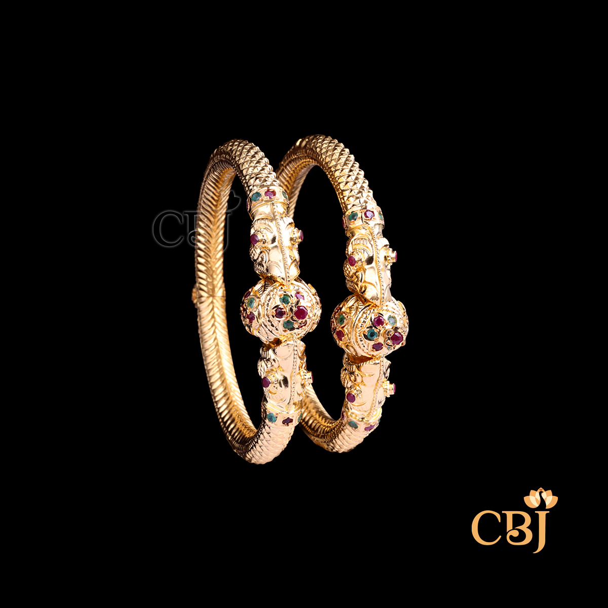 CZ Pachi Lakshmi Bangles 22K Gold 38.76g | CBJ