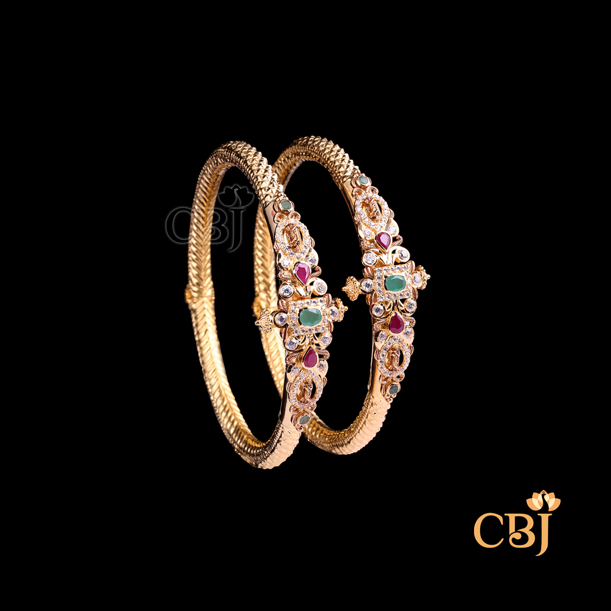 CZ Pachi Lakshmi Bangles 22K Gold 38.76g | CBJ