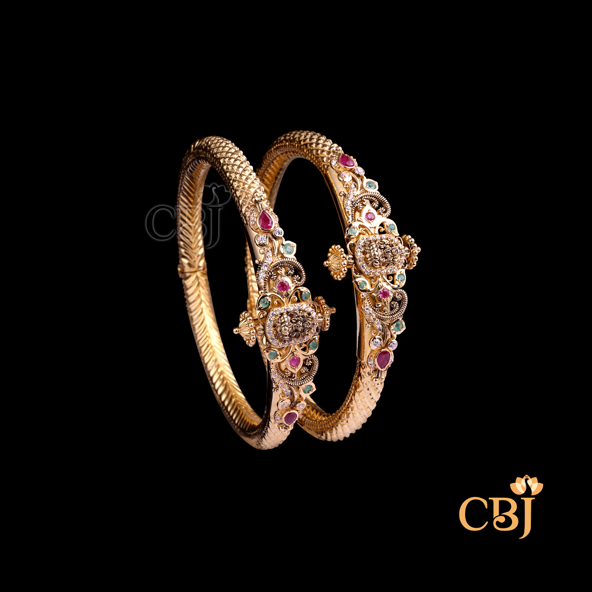 CZ Pachi Lakshmi Bangles 22K Gold 38.76g | CBJ