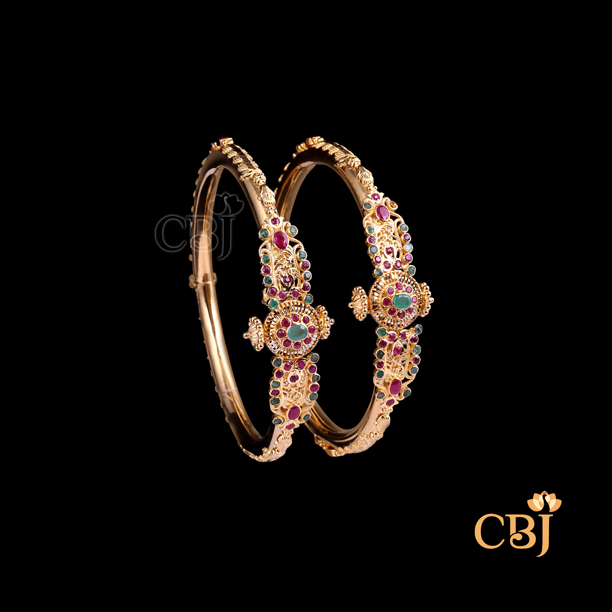 CZ Pachi Emerald Bangles 22K Gold 48.39g | CBJ
