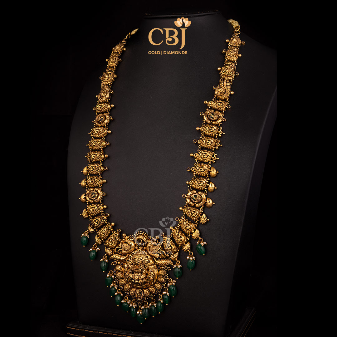 48 grams Antique lightweight Nakshi long Haram Necklace Design