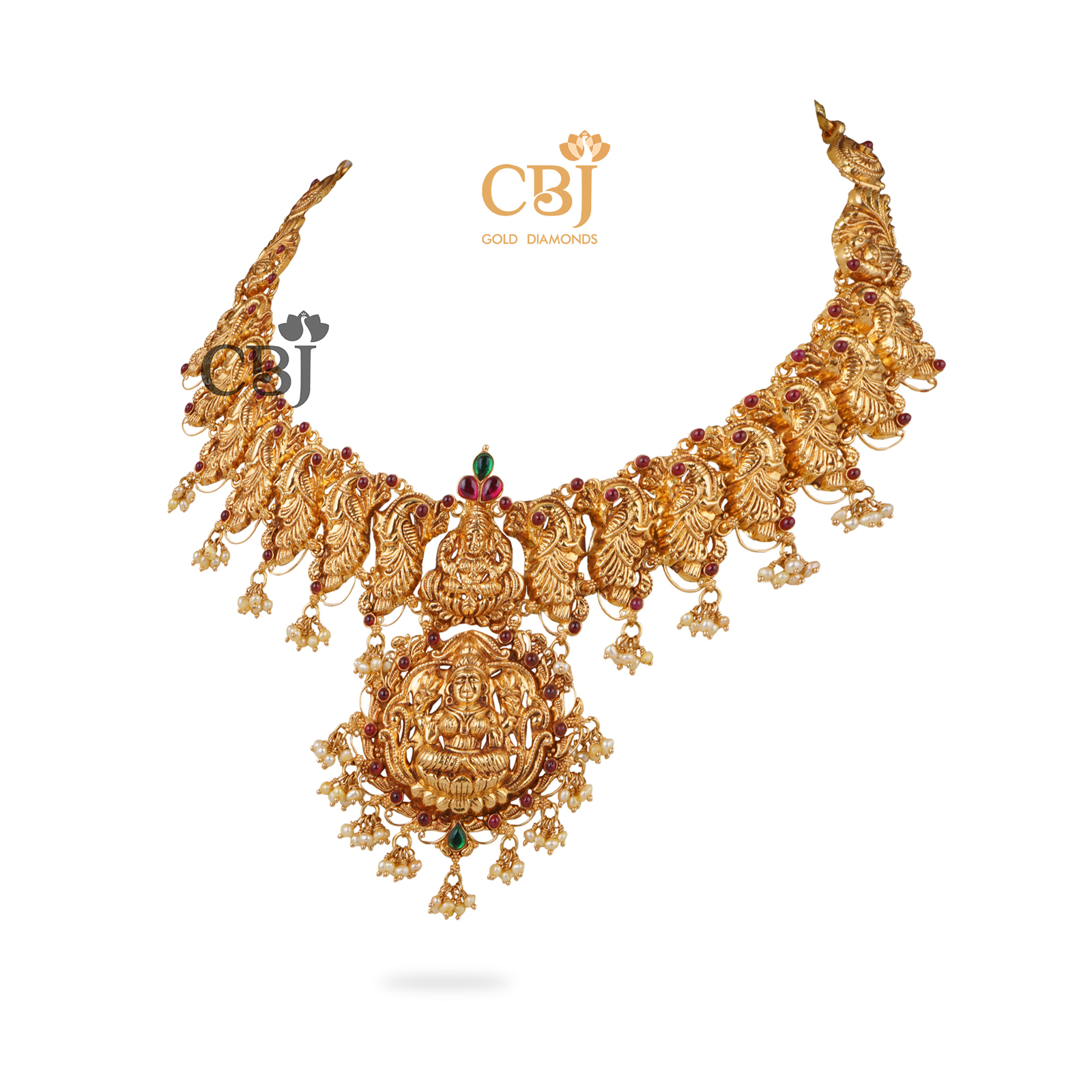 Lightweight 10 Grams Nakshi Gold Necklace with Classic Finish