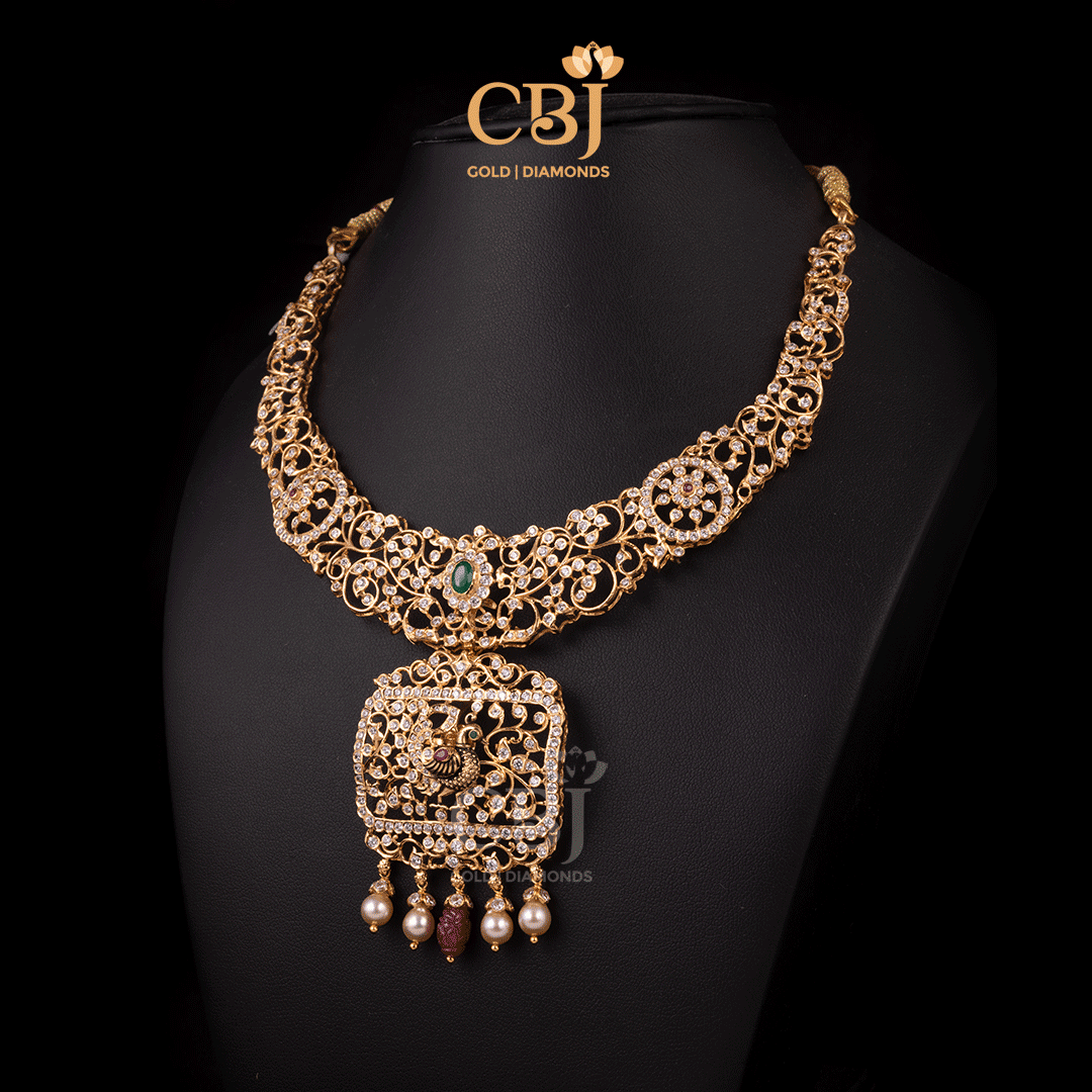 Lightweight 10 Grams Nakshi Gold Necklace with Classic Finish