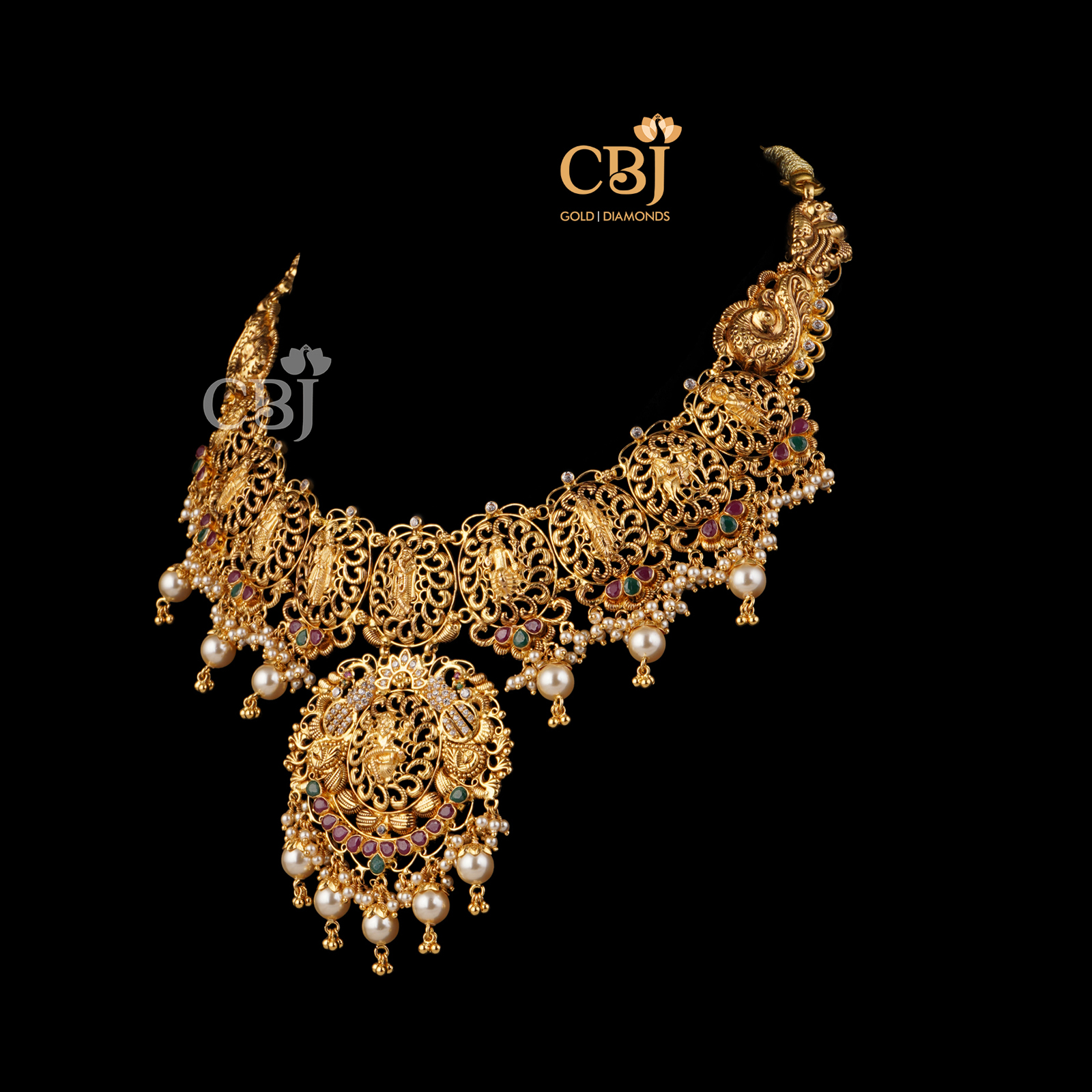 Lightweight 10 Grams Nakshi Gold Necklace with Classic Finish