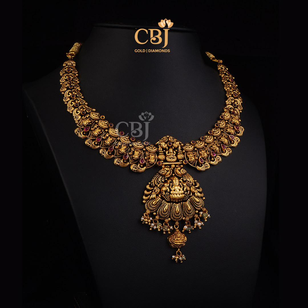 Antique Style 13 Grams Short Nakshi Gold Necklace Design