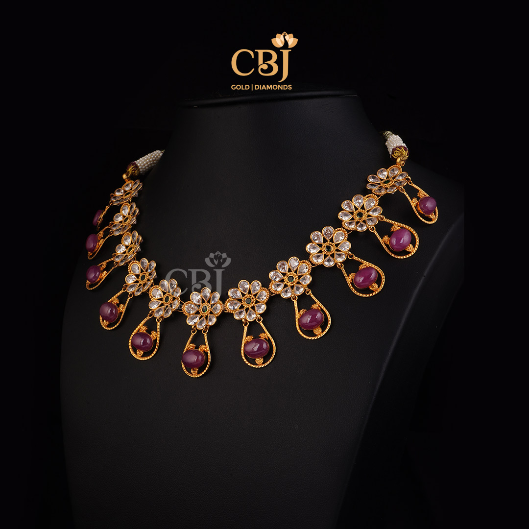 Floral Necklace With Ruby Drops