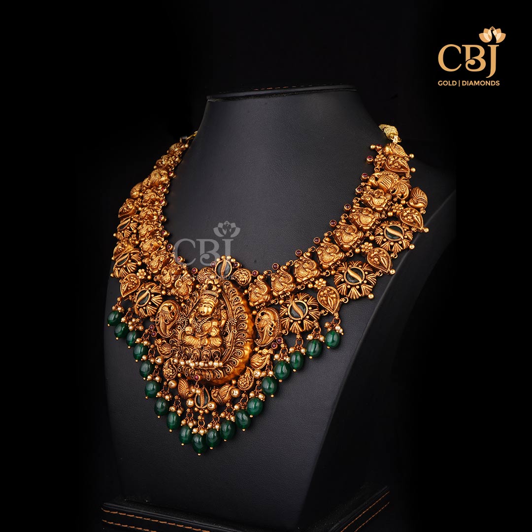 Lightweight 10 Grams Nakshi Gold Necklace with Classic Finish