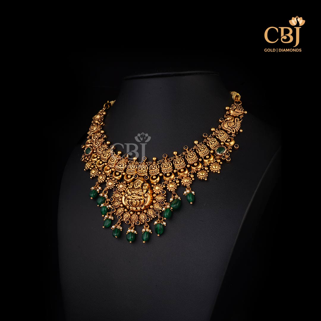 10 Grams Lightweight Antique Nakshi Short Gold Necklace Style