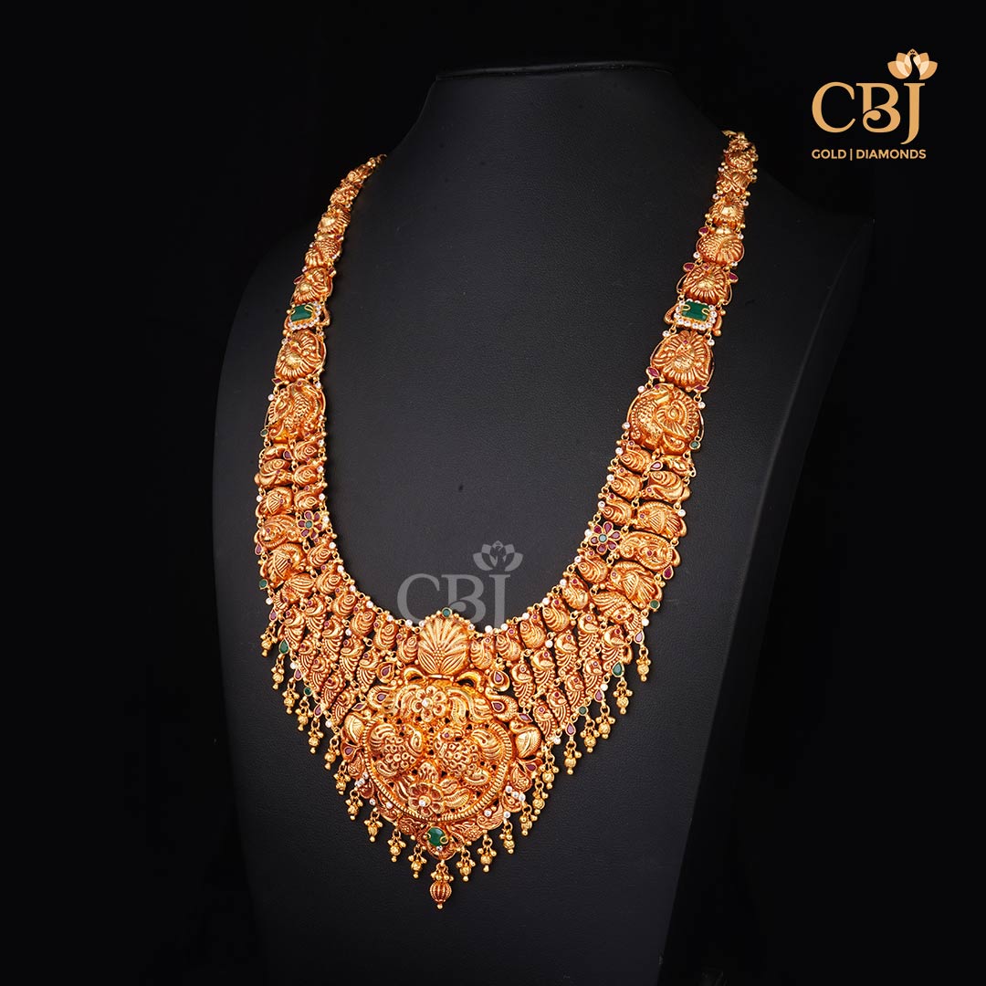 48 grams Antique lightweight Nakshi long Haram Necklace Design