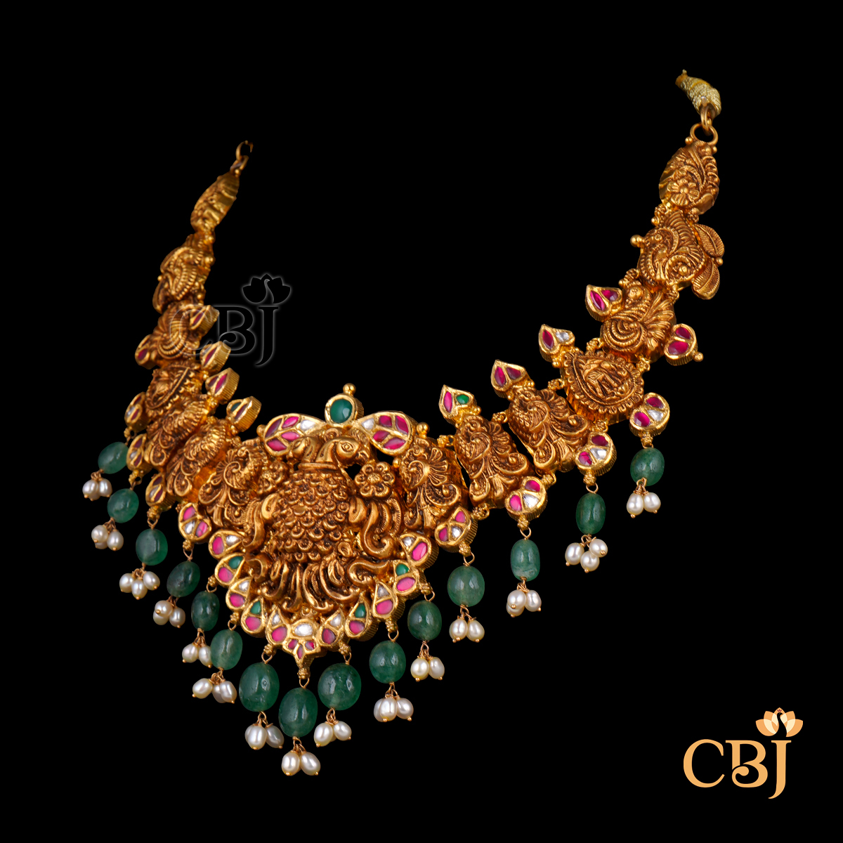 10 Grams Lightweight Antique Nakshi Short Gold Necklace Style