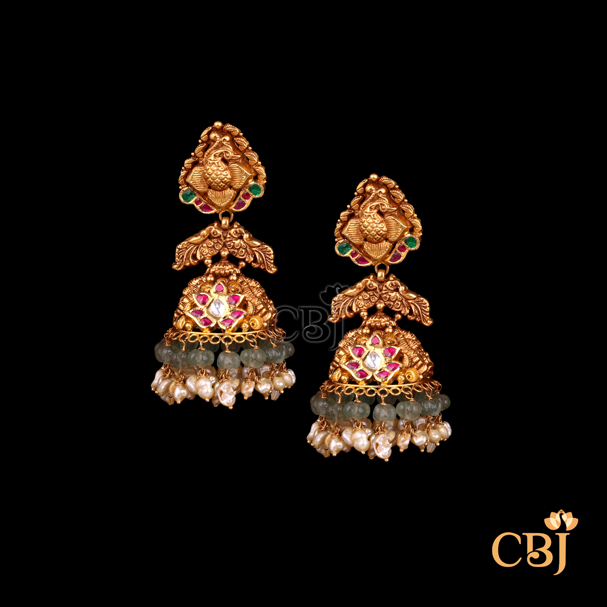 Nakshi Pearl 22K Gold Antique Jhumkas 12.95g | CBJ