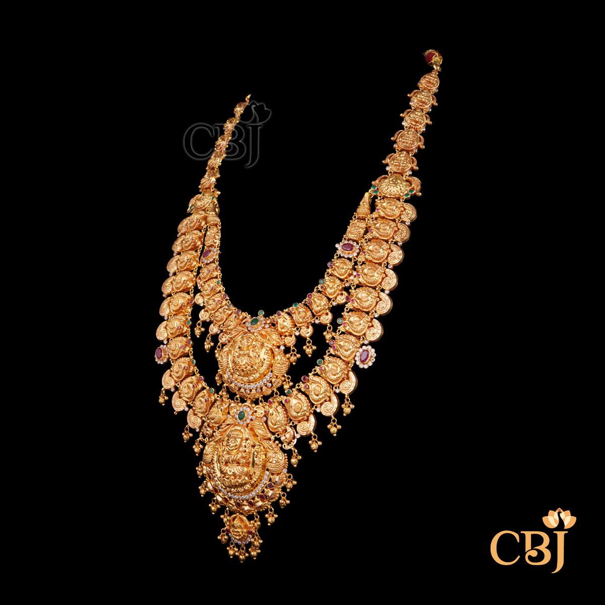 48 grams Antique lightweight Nakshi long Haram Necklace Design