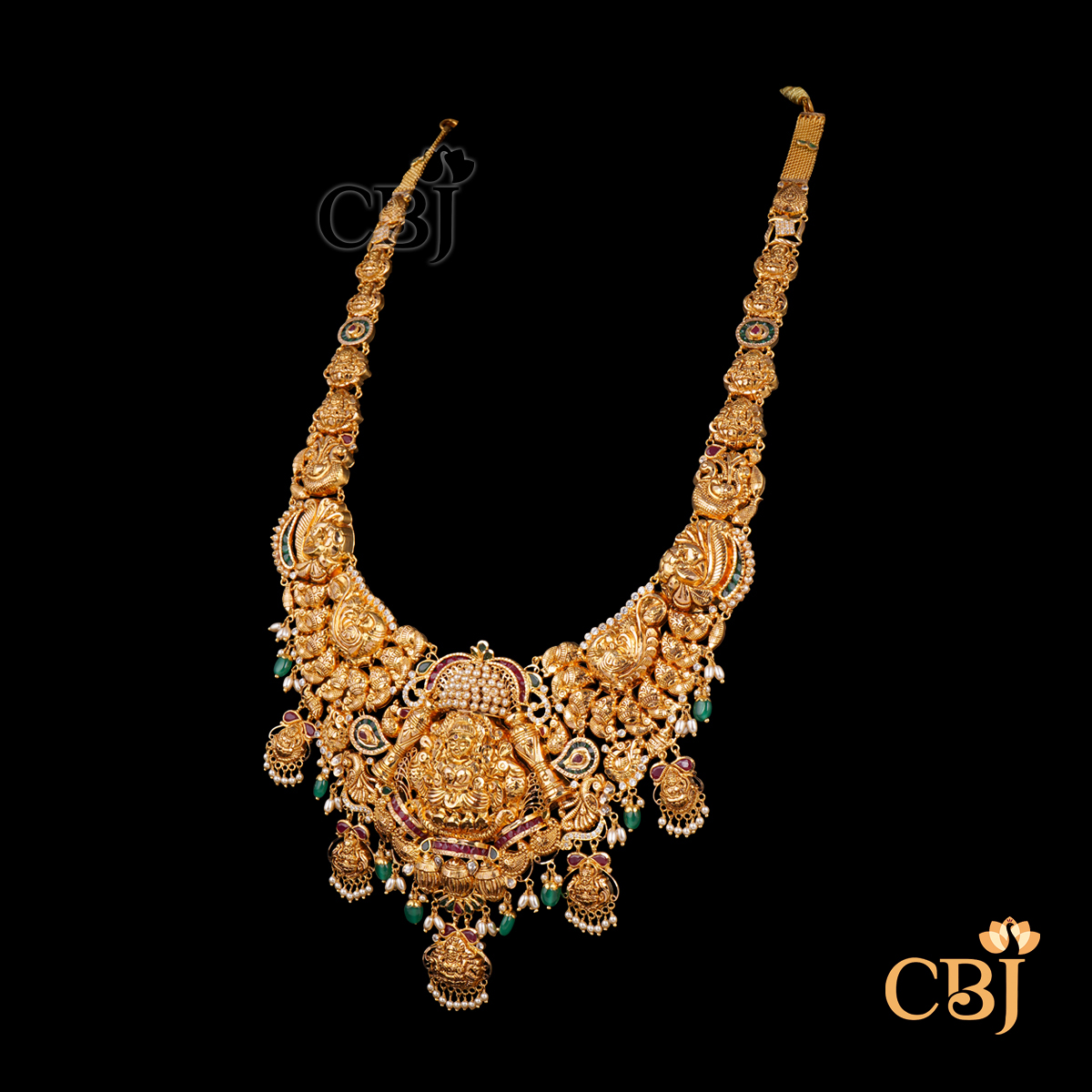 48 grams Antique lightweight Nakshi long Haram Necklace Design