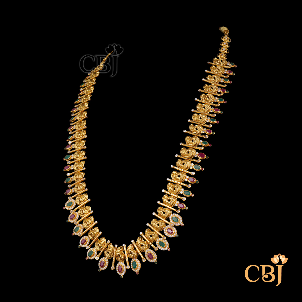 48 grams Antique lightweight Nakshi long Haram Necklace Design