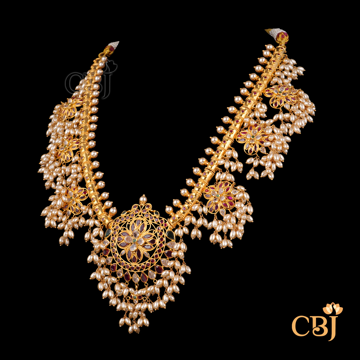 Lightweight 10 Grams Nakshi Gold Necklace with Classic Finish