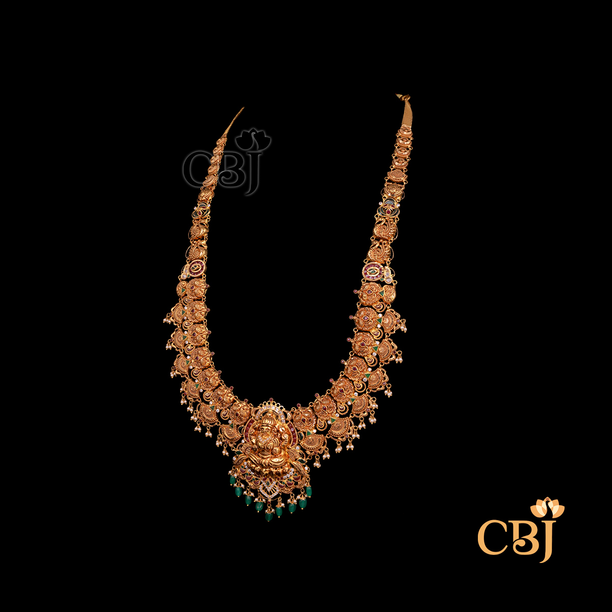 48 grams Antique lightweight Nakshi long Haram Necklace Design