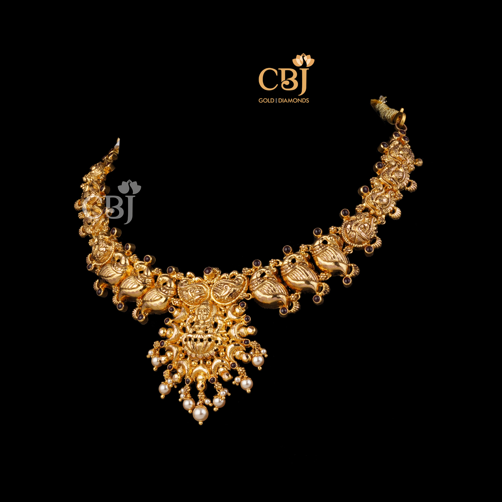 10 Grams Lightweight Antique Nakshi Short Gold Necklace Style