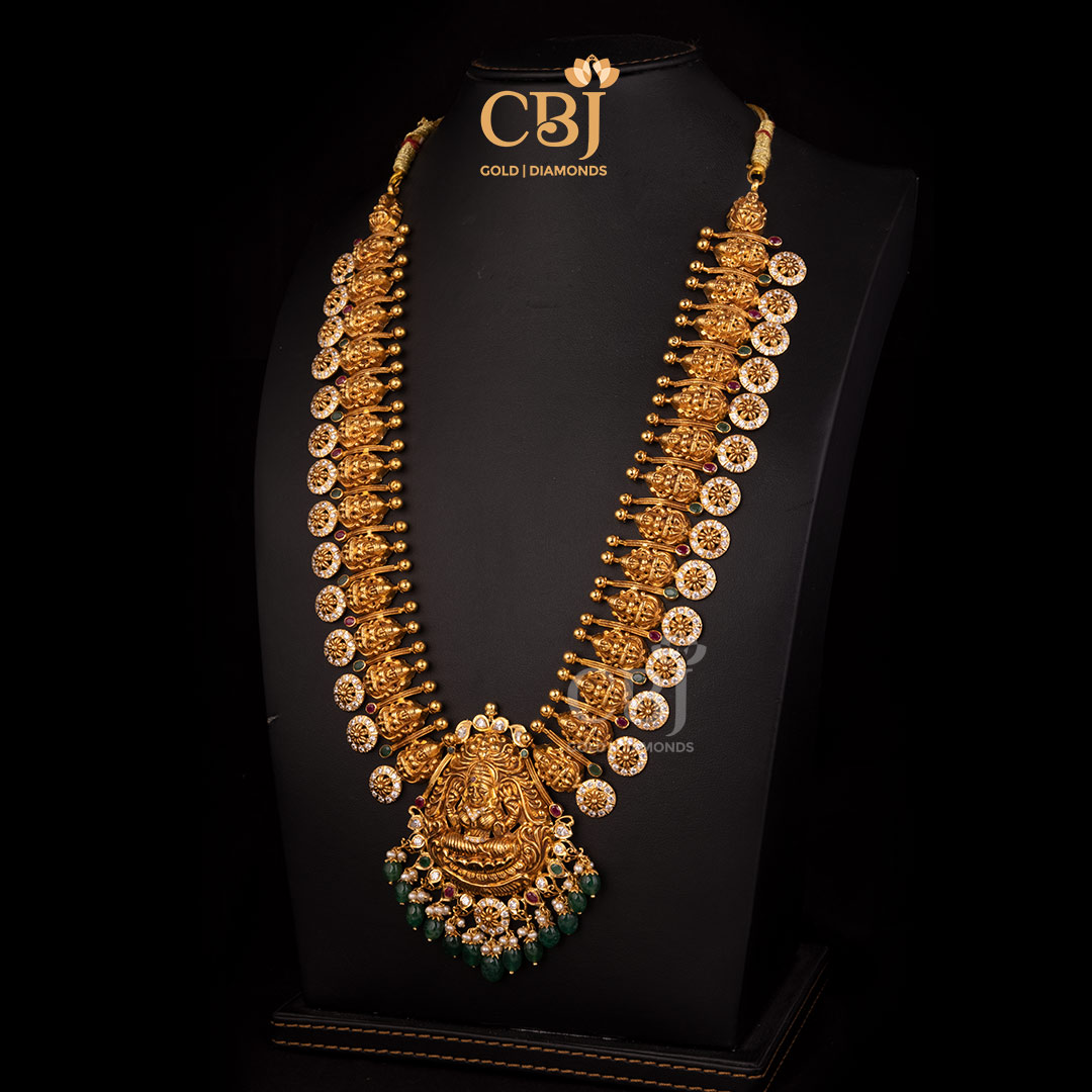 48 grams Antique lightweight Nakshi long Haram Necklace Design