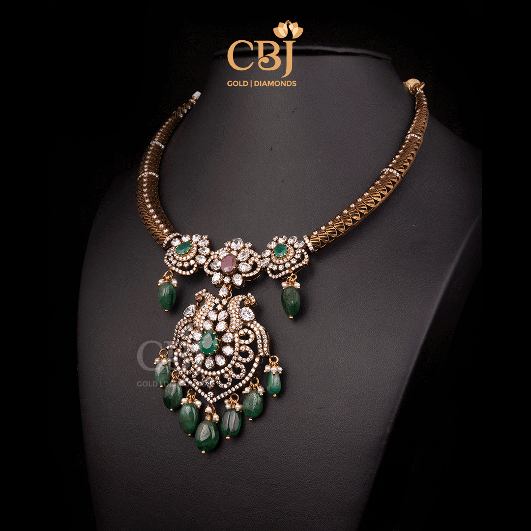 10 Grams Lightweight Antique Nakshi Short Gold Necklace Style