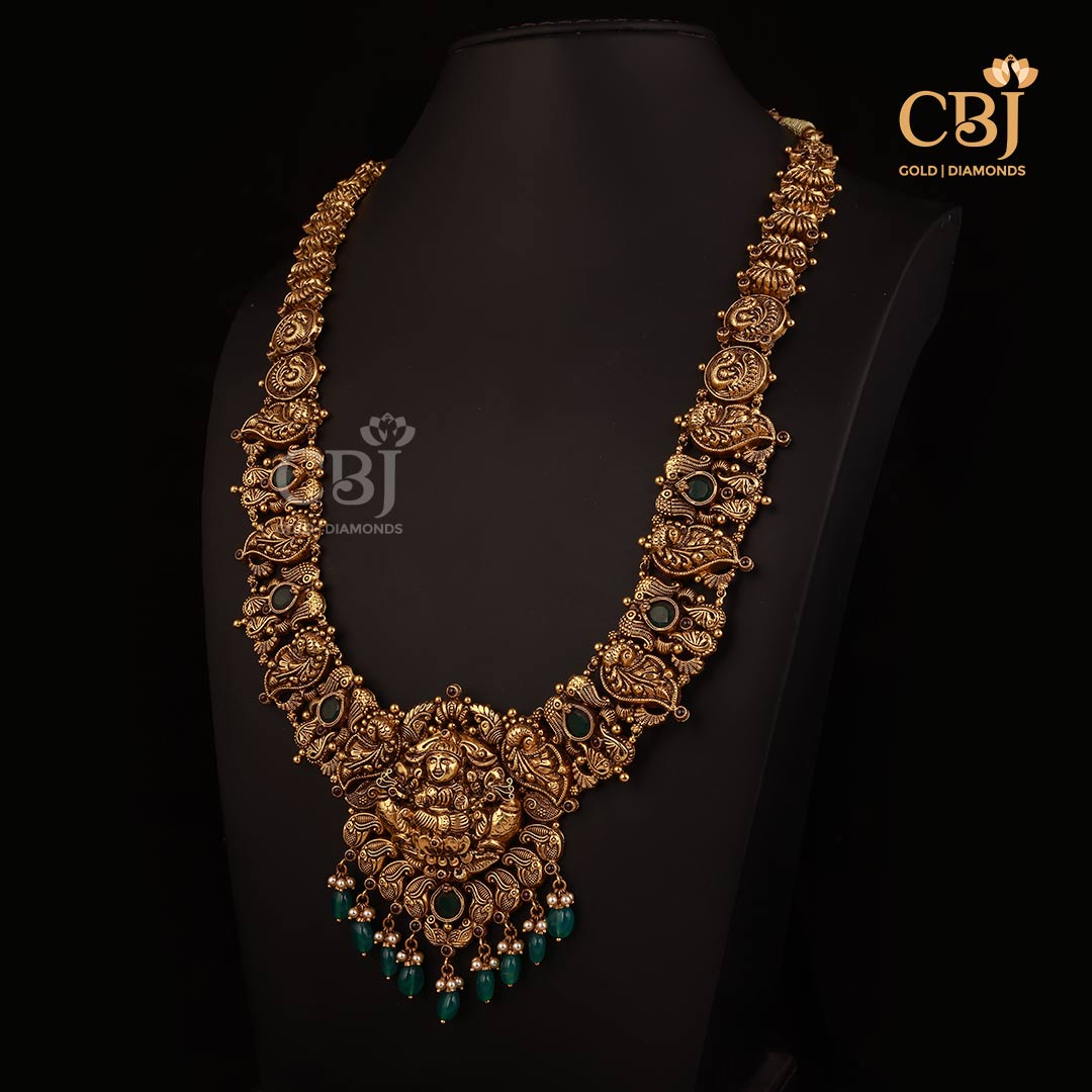 48 grams Antique lightweight Nakshi long Haram Necklace Design