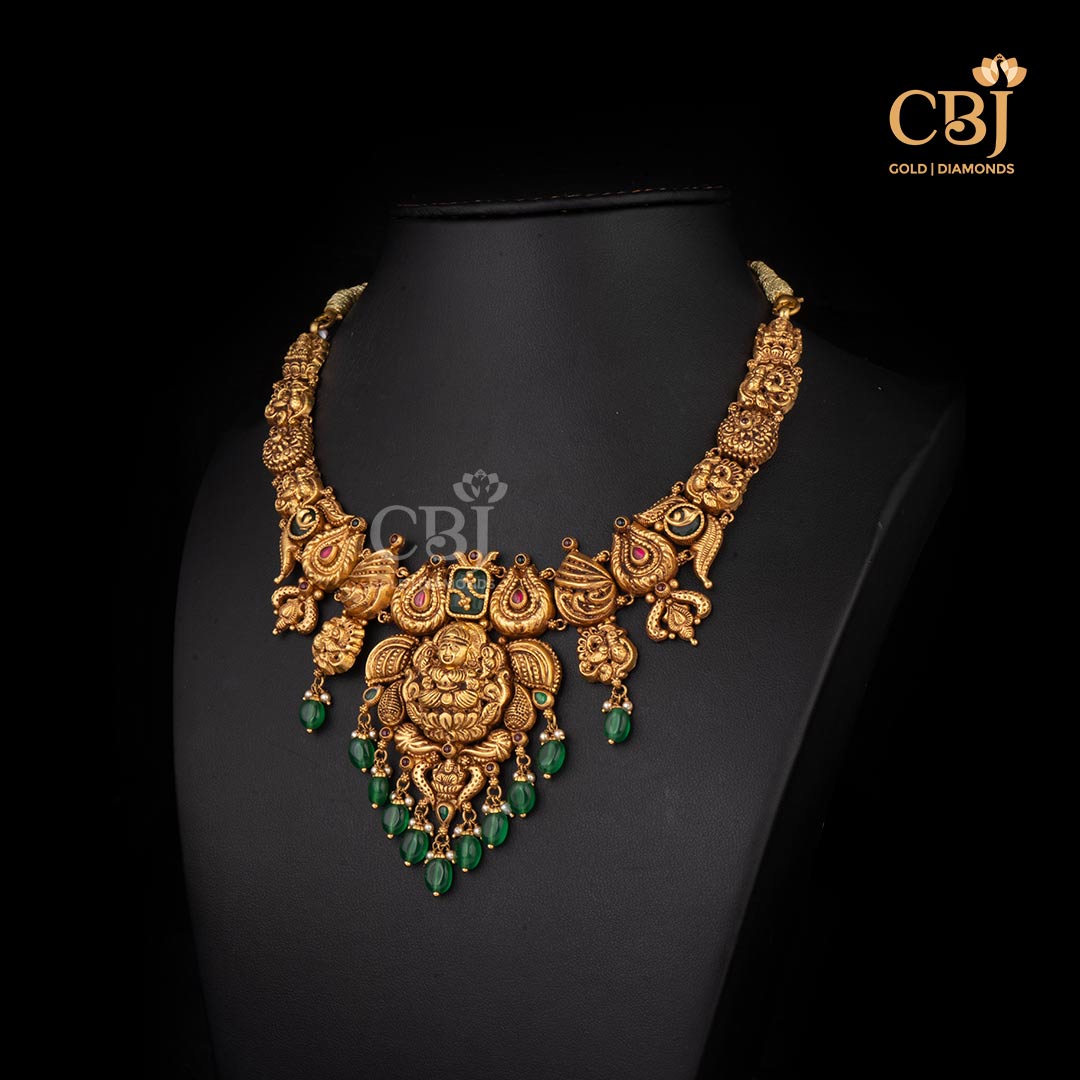 Lightweight 10 Grams Nakshi Gold Necklace with Classic Finish