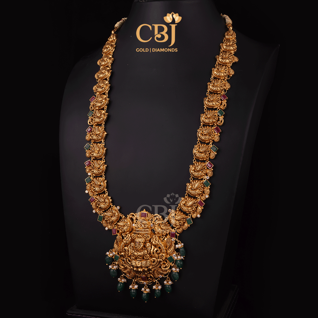 48 grams Antique lightweight Nakshi long Haram Necklace Design