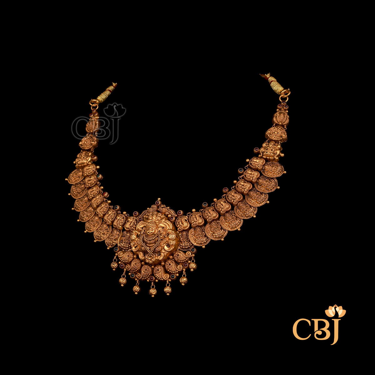 Lightweight 10 Grams Nakshi Gold Necklace with Classic Finish