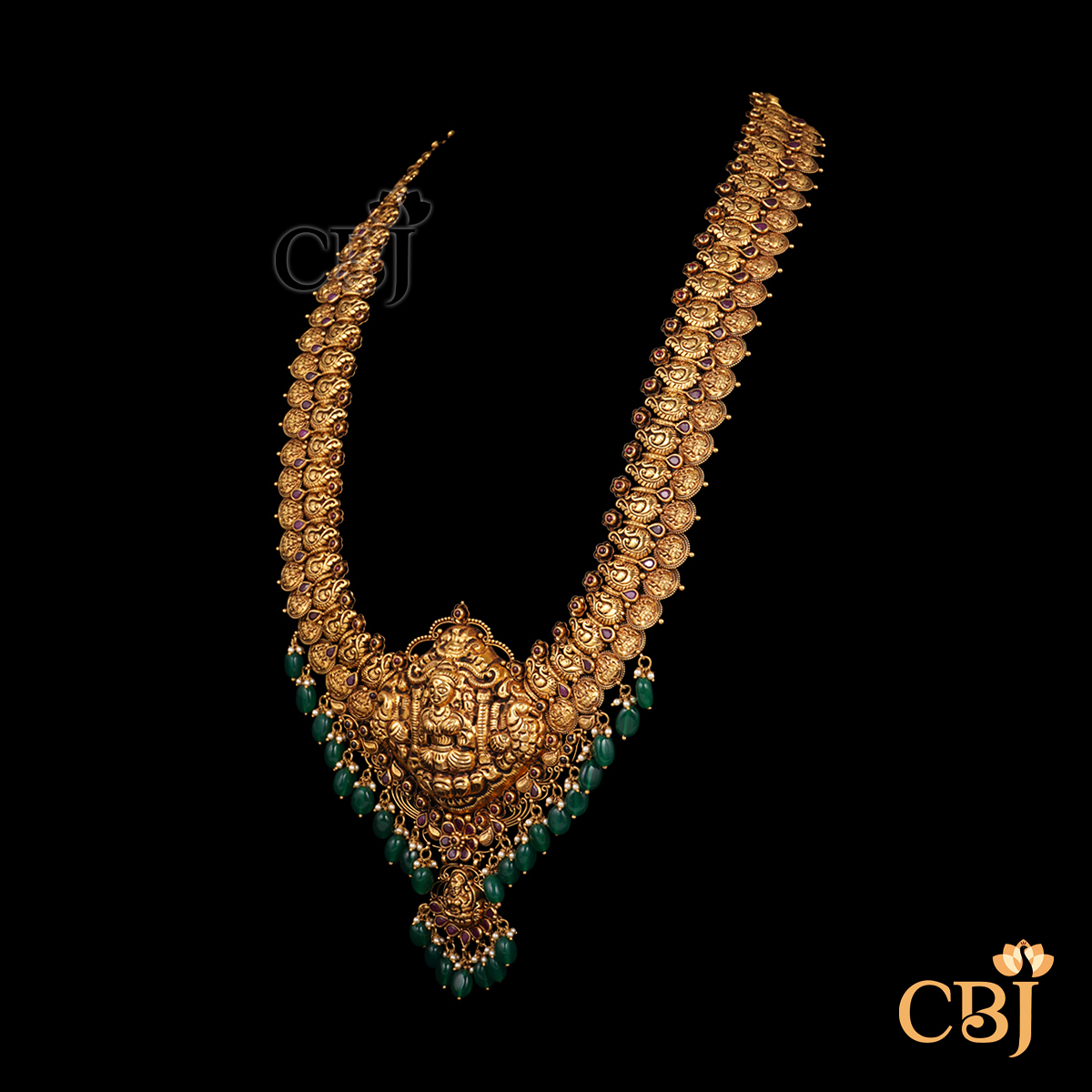 48 grams Antique lightweight Nakshi long Haram Necklace Design