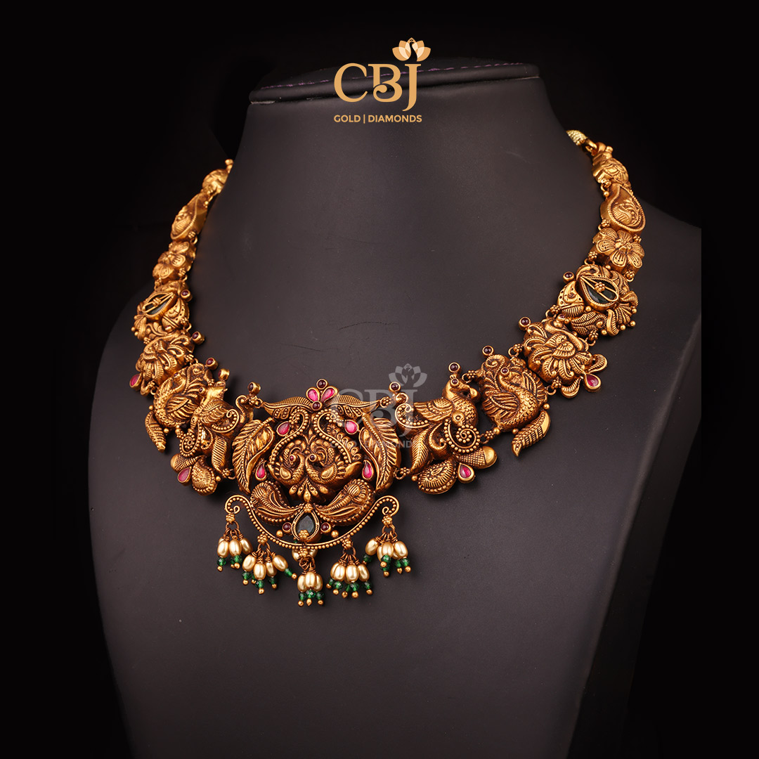 10 Grams Lightweight Antique Nakshi Short Gold Necklace Style