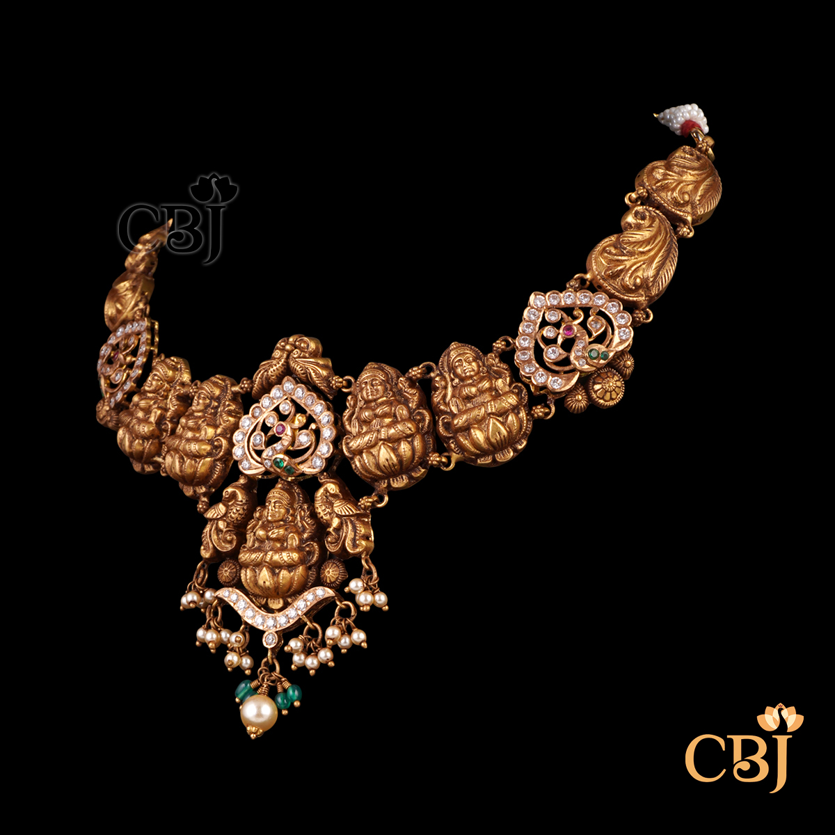 10 Grams Lightweight Antique Nakshi Short Gold Necklace Style