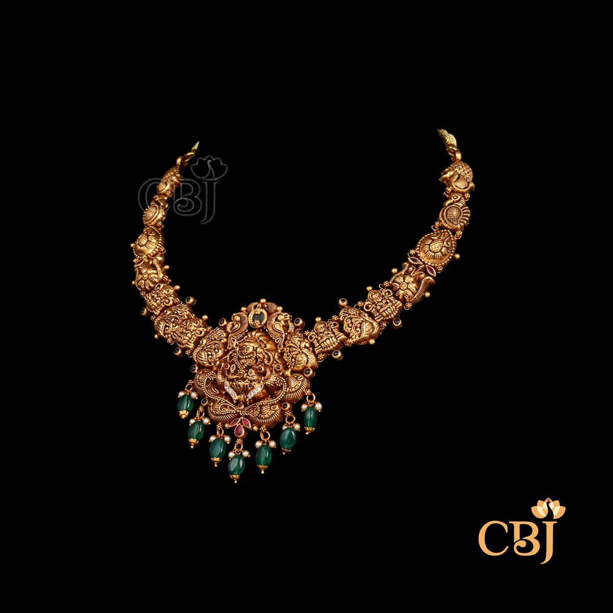 10 Grams Lightweight Antique Nakshi Short Gold Necklace Style