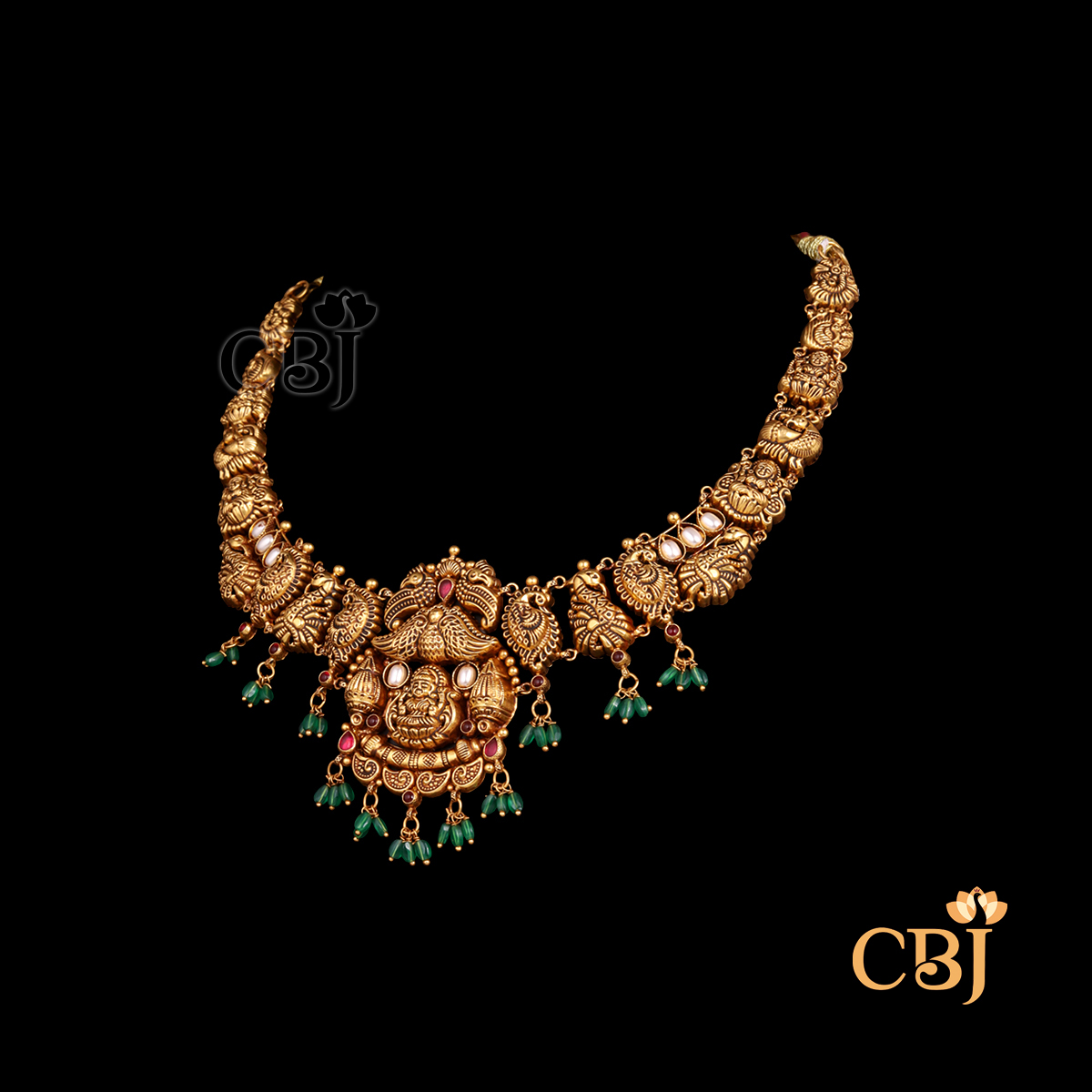 10 Grams Lightweight Antique Nakshi Short Gold Necklace Style