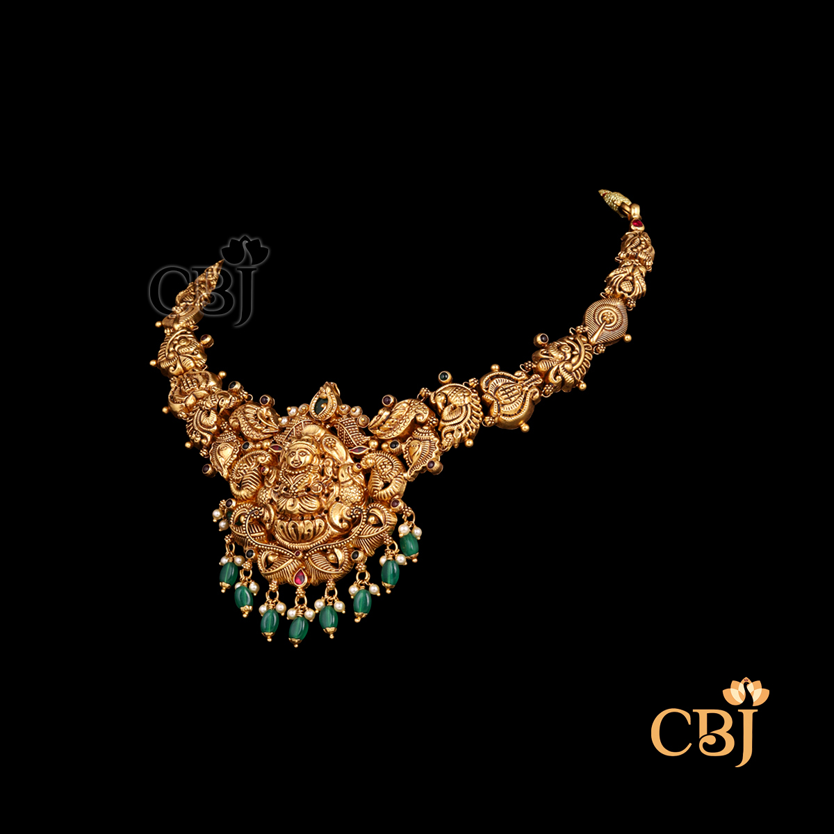 Antique Style 13 Grams Short Nakshi Gold Necklace Design