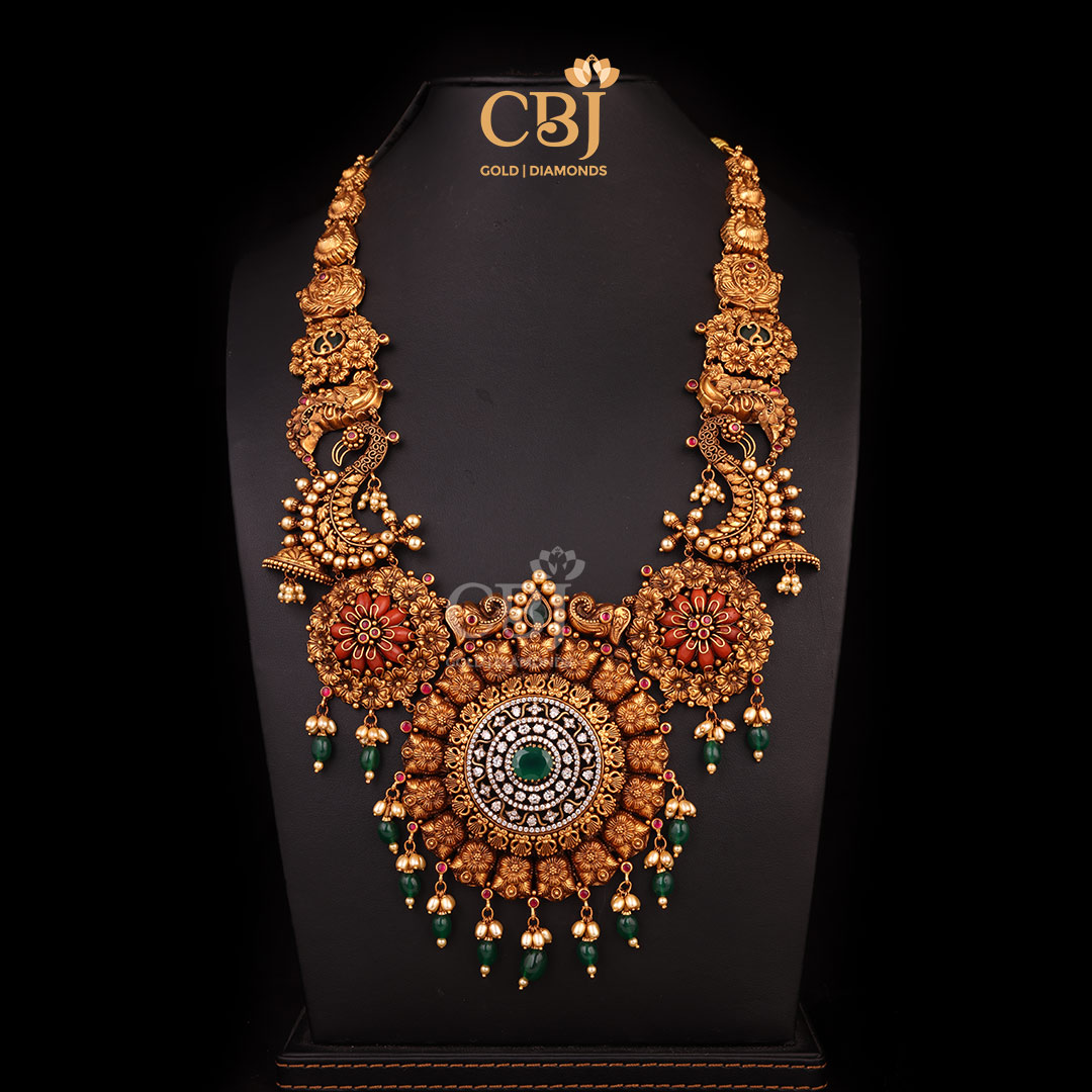 48 grams Antique lightweight Nakshi long Haram Necklace Design