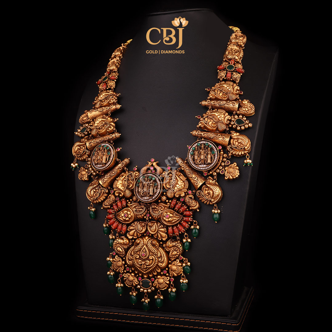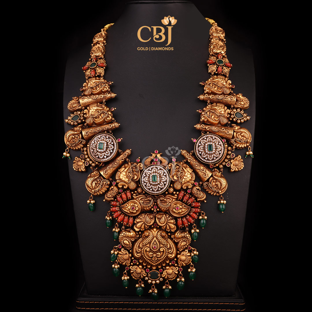 48 grams Antique lightweight Nakshi long Haram Necklace Design