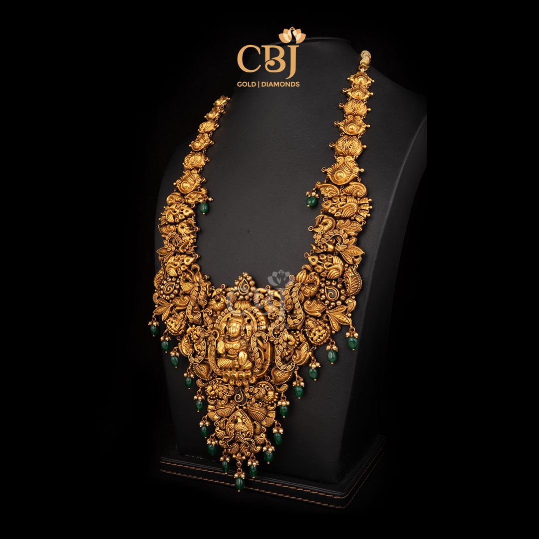 48 grams Antique lightweight Nakshi long Haram Necklace Design