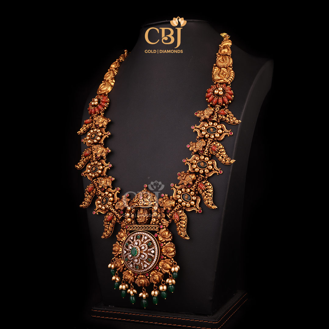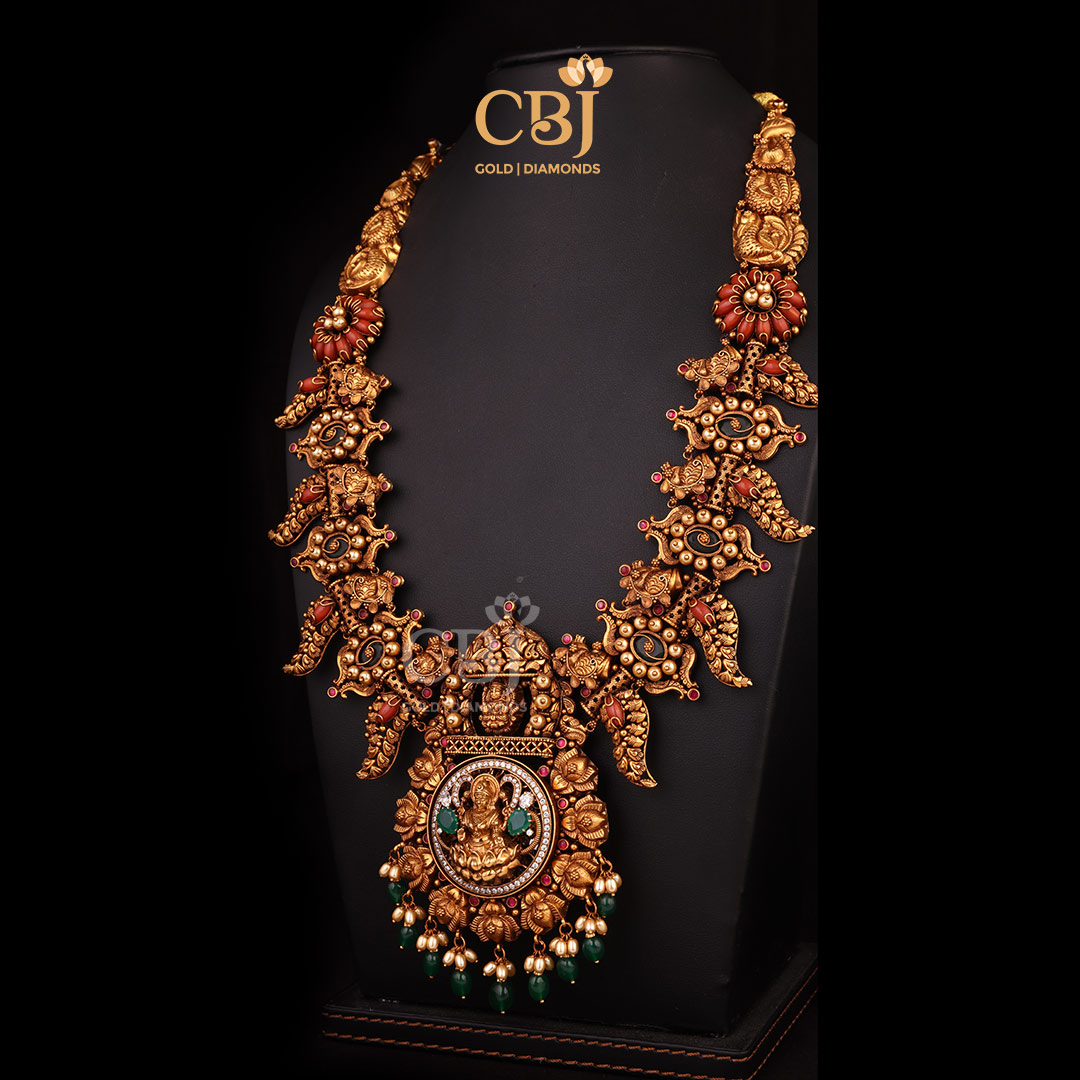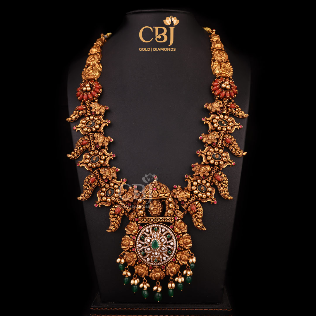 48 grams Antique lightweight Nakshi long Haram Necklace Design