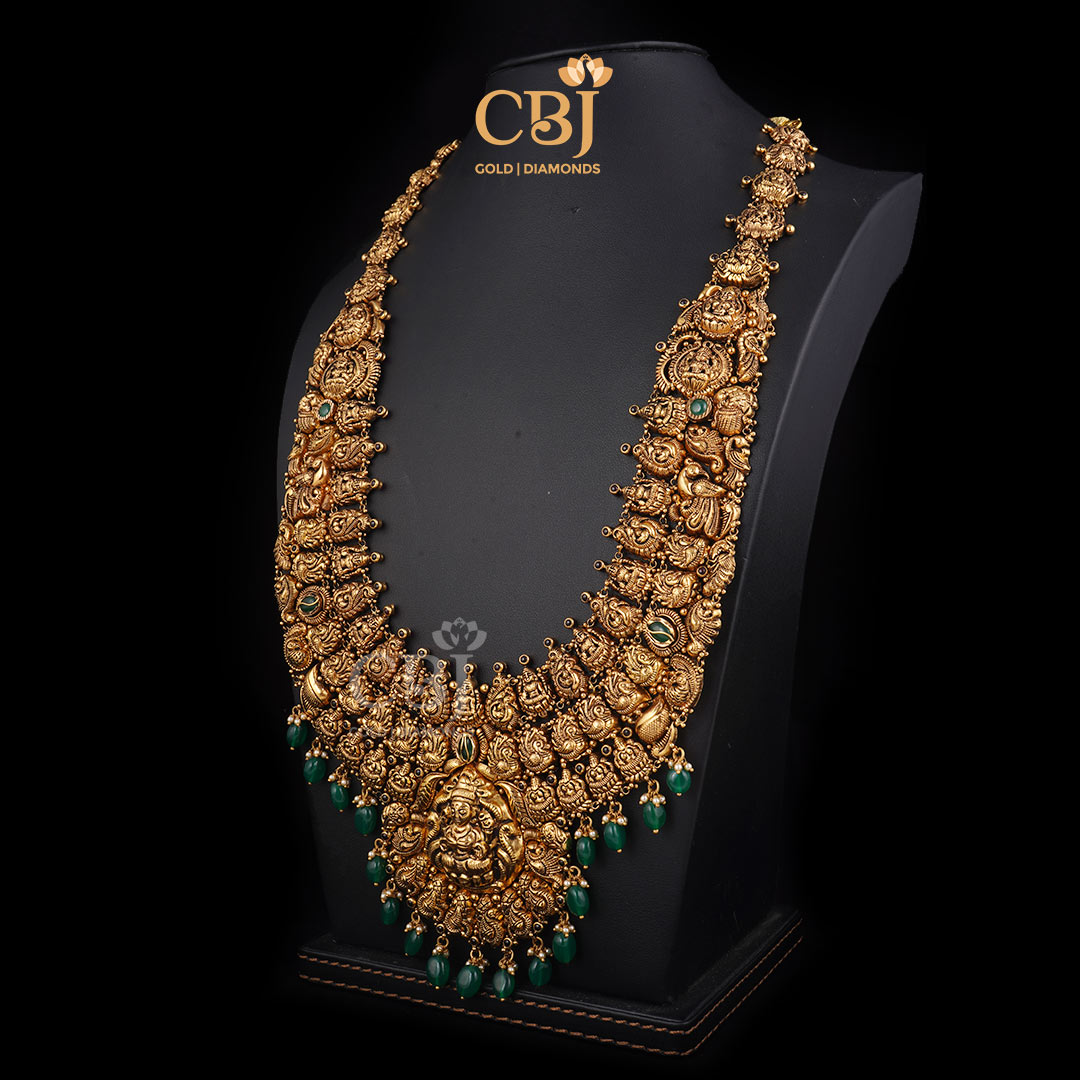 48 grams Antique lightweight Nakshi long Haram Necklace Design