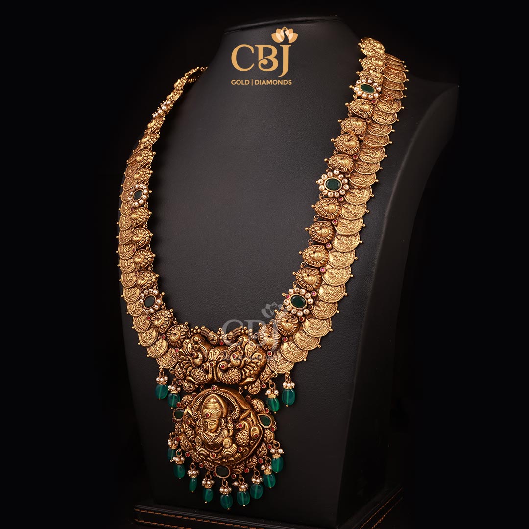 48 grams Antique lightweight Nakshi long Haram Necklace Design