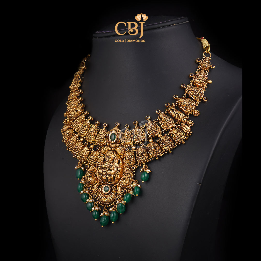 Antique Style 13 Grams Short Nakshi Gold Necklace Design