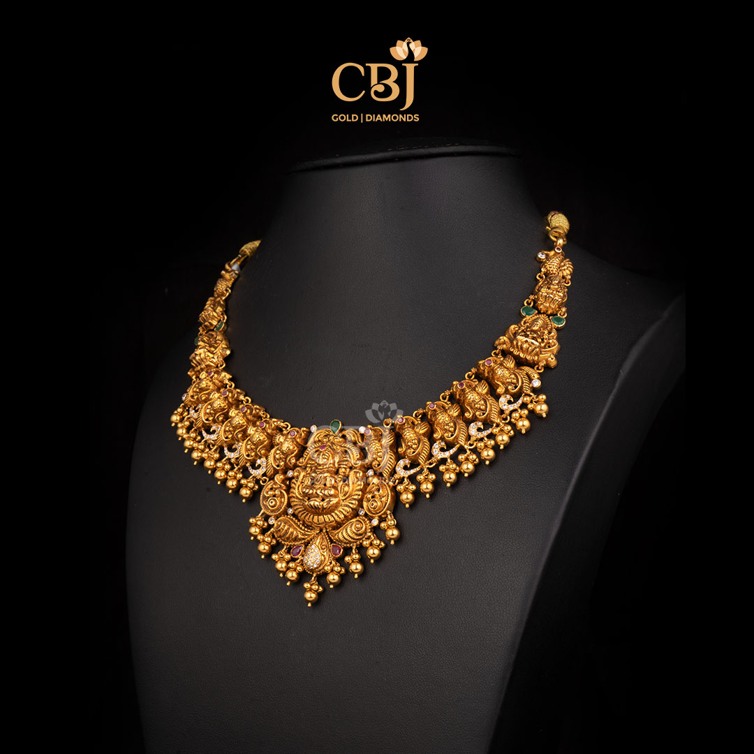 10 Grams Lightweight Antique Nakshi Short Gold Necklace Style