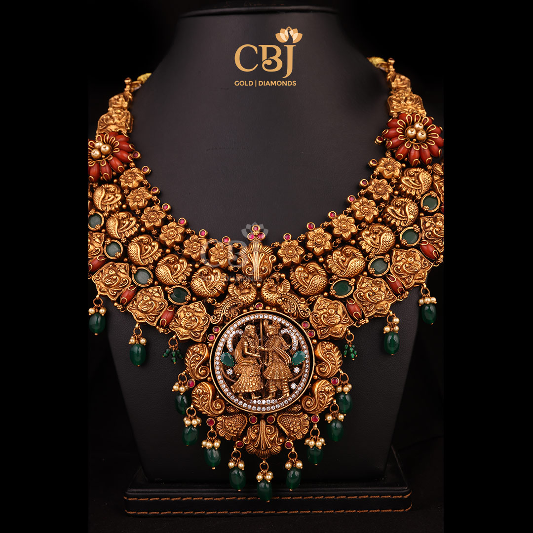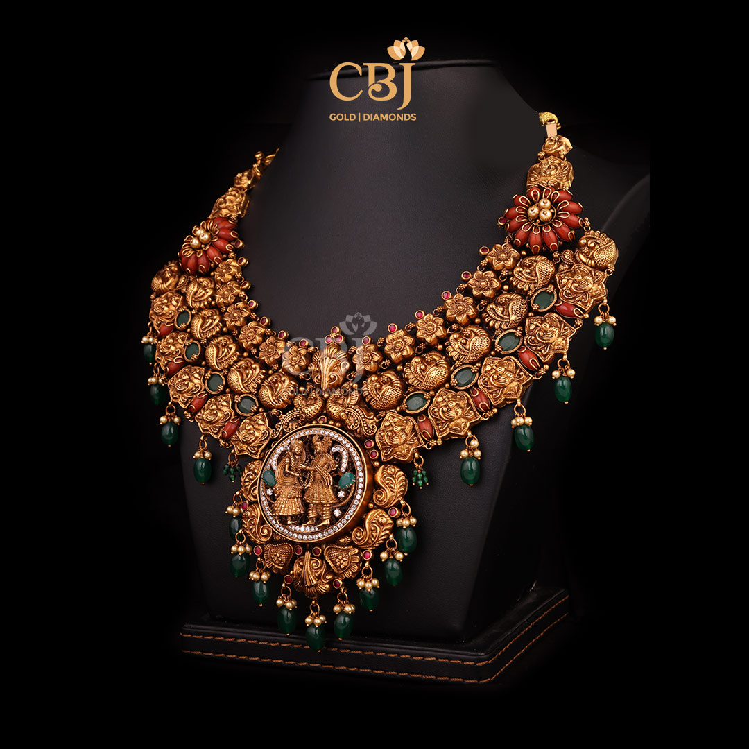 Antique Nakshi Short Gold Necklace Crafted in 17 Grams