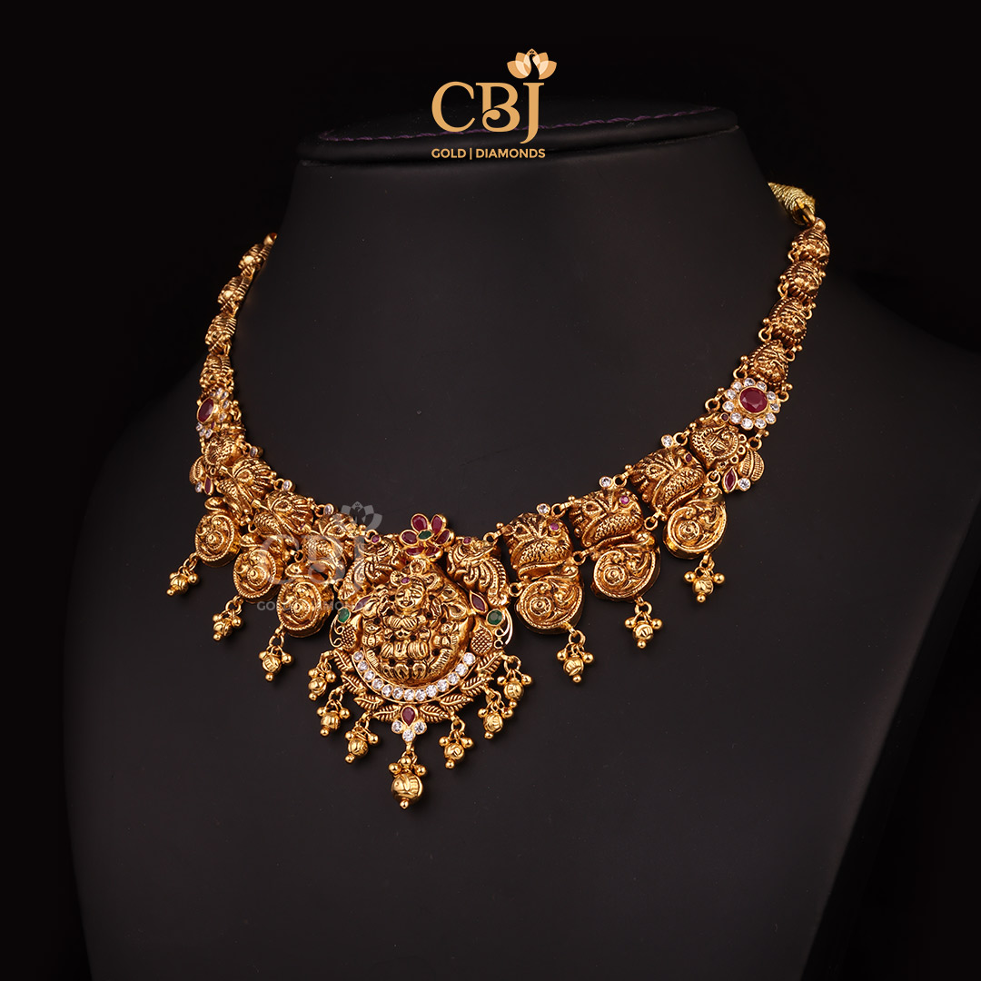 10 Grams Lightweight Antique Nakshi Short Gold Necklace Style