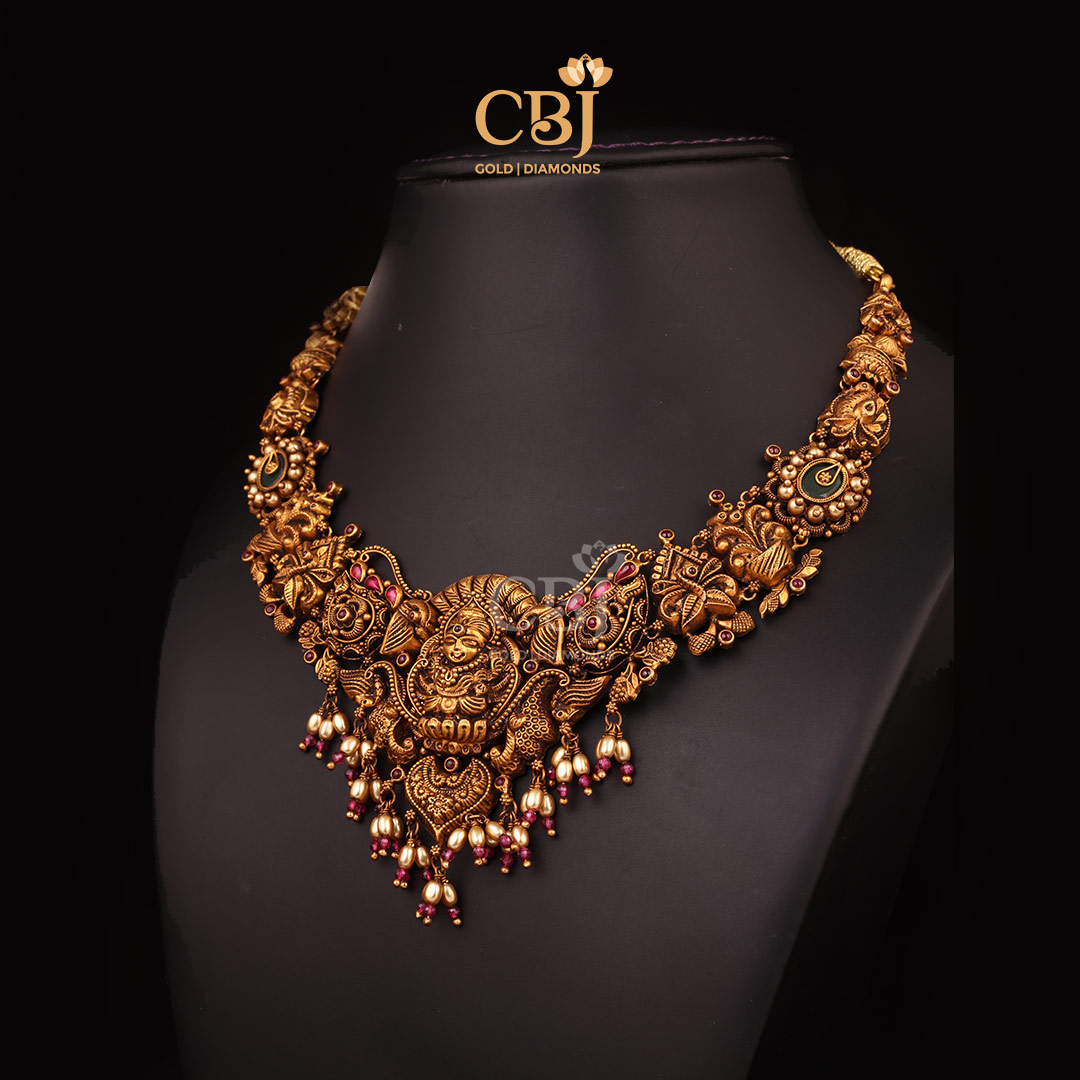Antique Style 13 Grams Short Nakshi Gold Necklace Design
