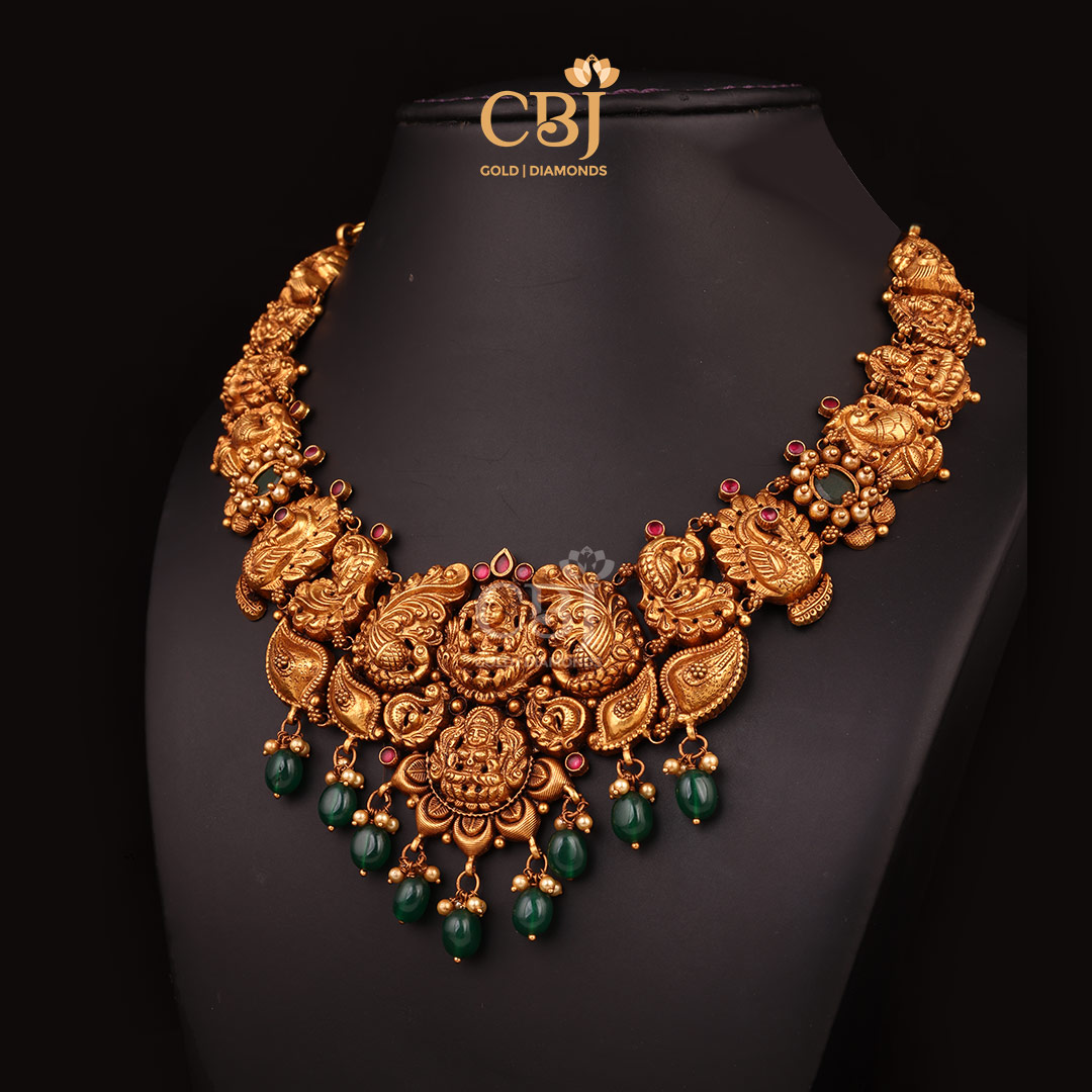 Antique Style 13 Grams Short Nakshi Gold Necklace Design