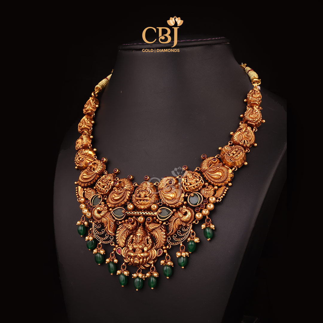 Lightweight 10 Grams Nakshi Gold Necklace with Classic Finish