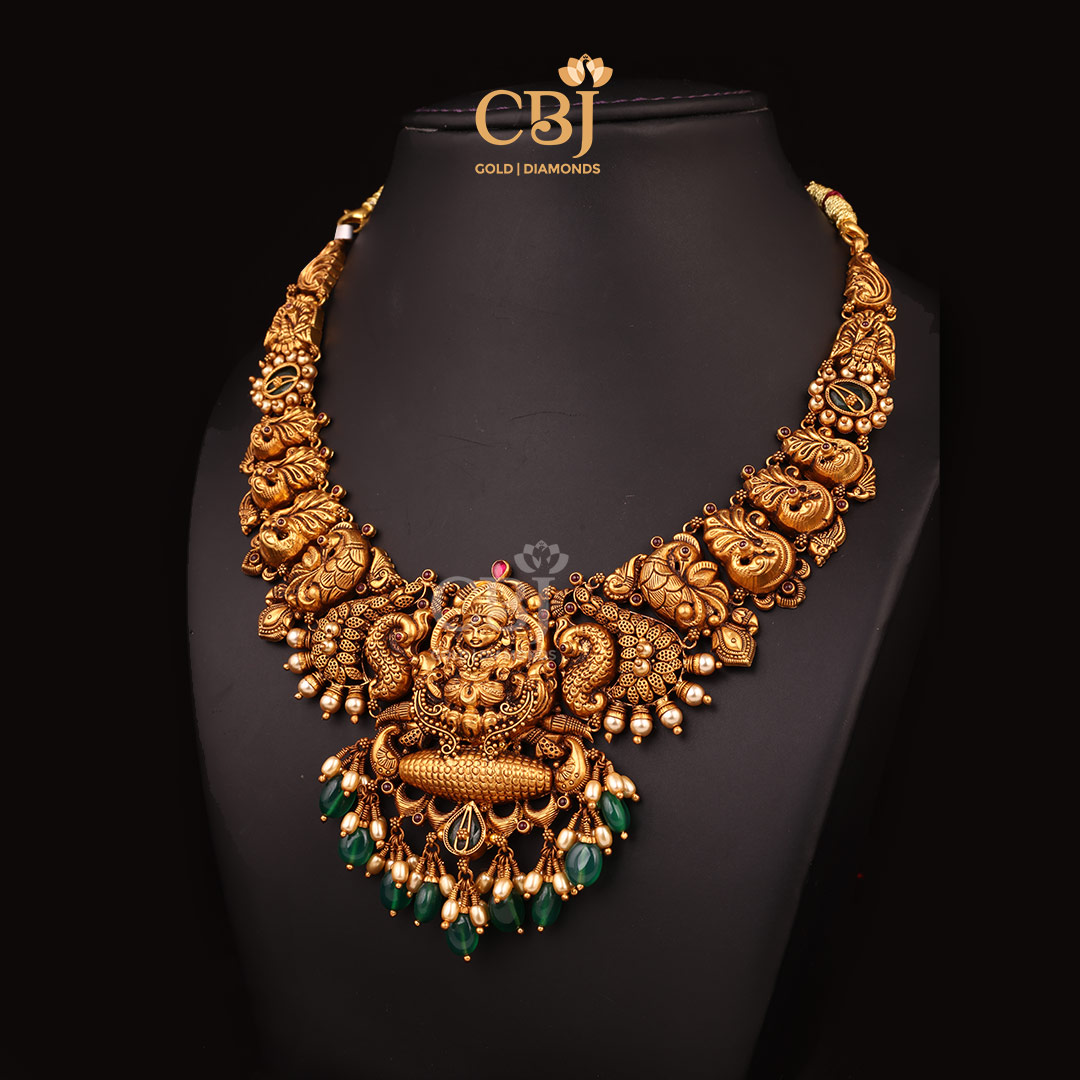 Antique Style 13 Grams Short Nakshi Gold Necklace Design